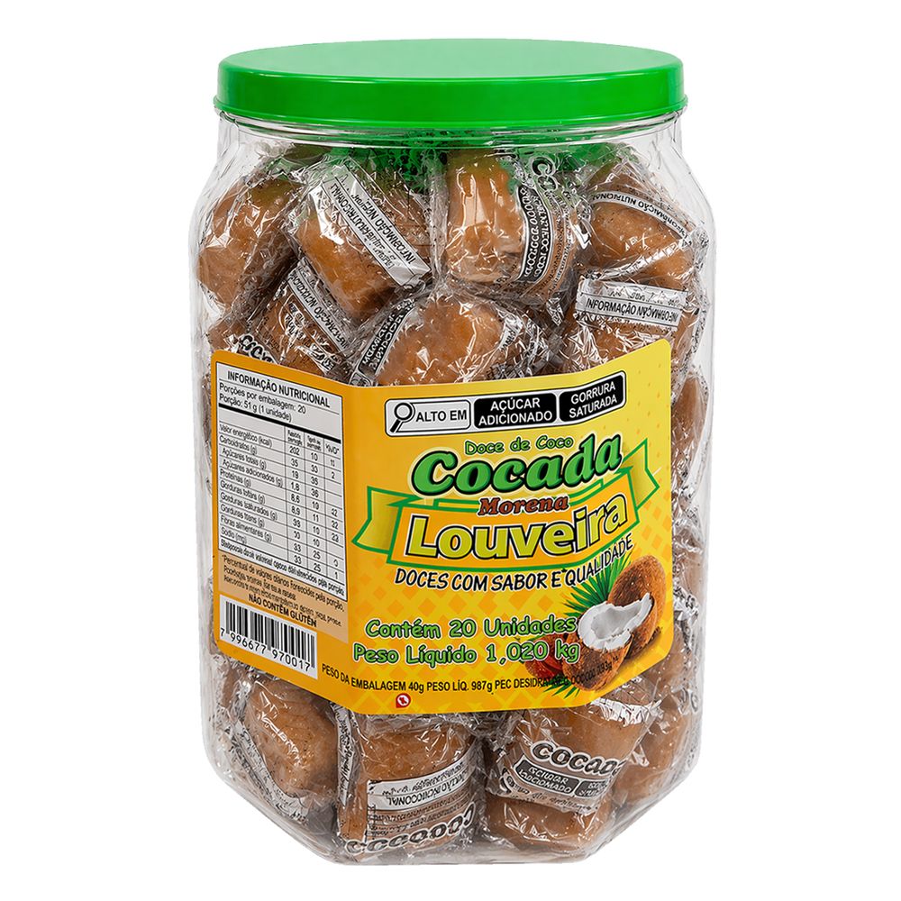 Cocada Morena Louveira 1,02kg com 20 Unidades