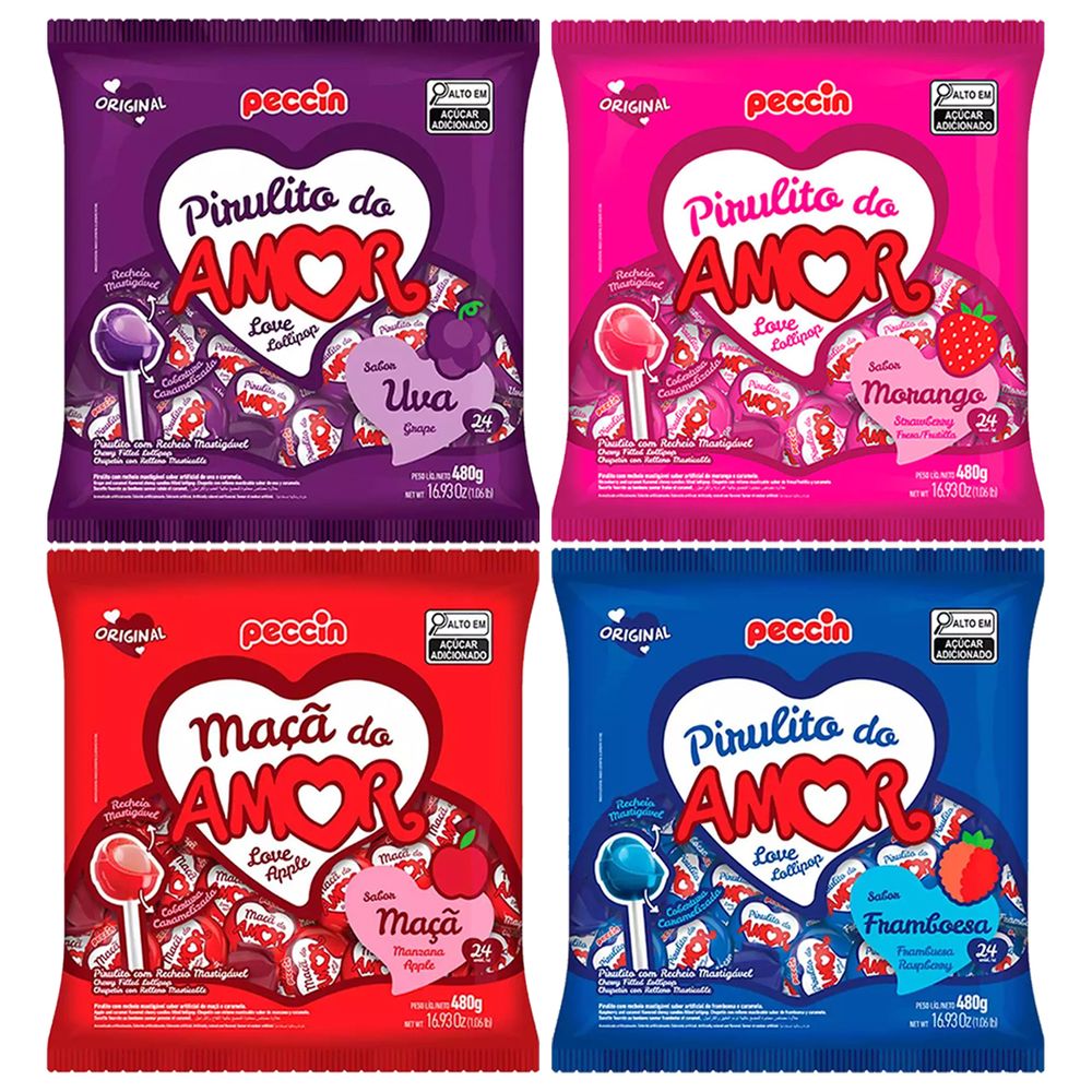 Kit 4 Pacotes Pirulitos do Amor Sortido 480g Peccin